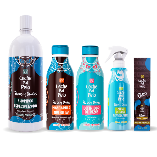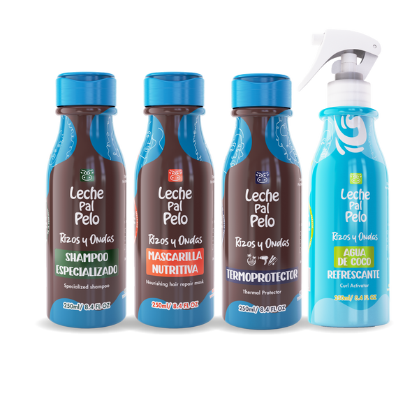 La Línea Rizos y Ondas de Leche Pal Pelo está diseñada especialmente para el cuidado del cabello ondulado, crespo y rizado que va desde el tipo de pelo 2A hasta el tipo 4A. Nuestros productos están formulados con ingredientes naturales como leche de coco, aloe vera y provitamina B5, que nutren, suavizan y protegen tu pelo de las agresiones externas.